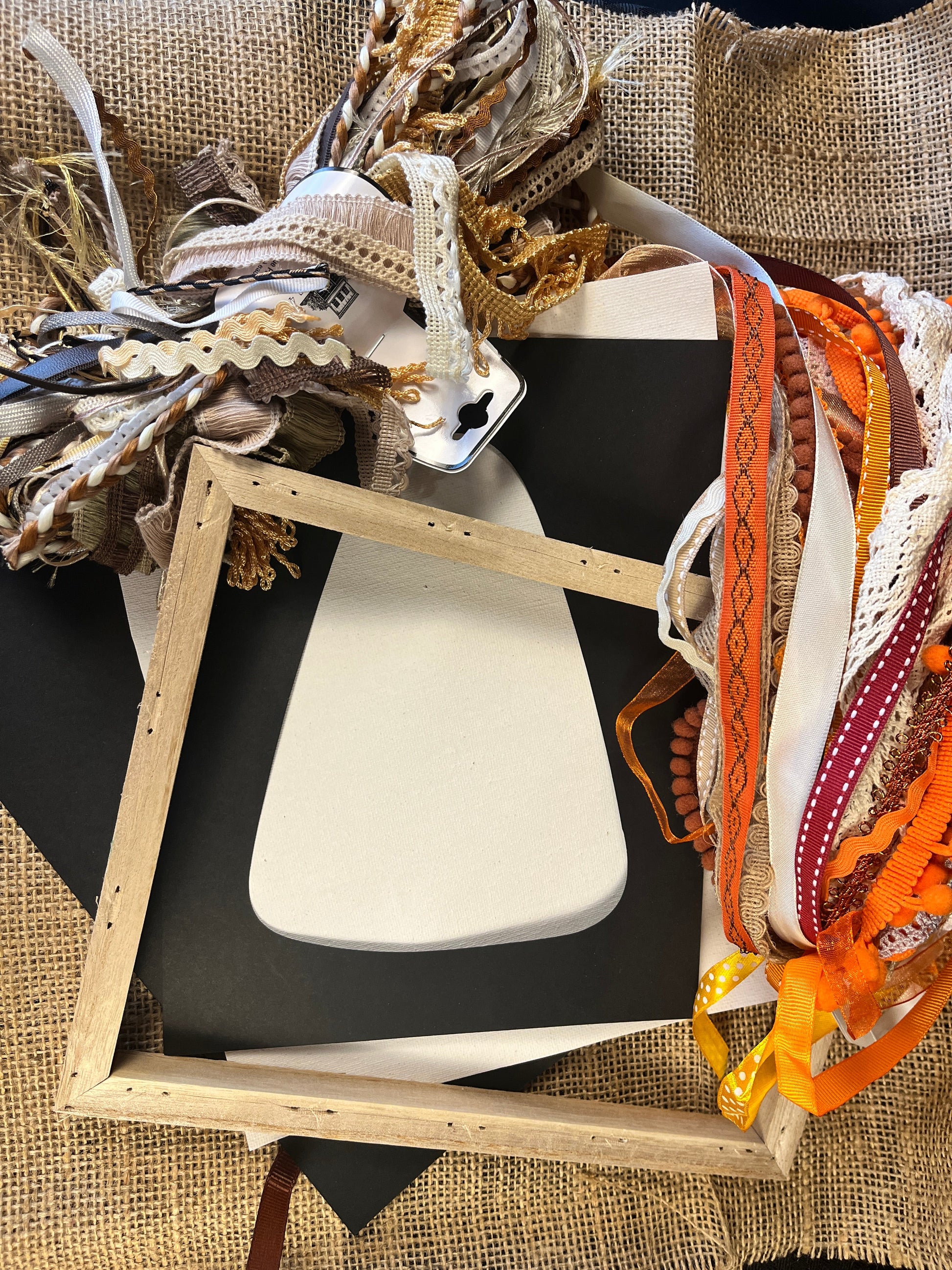Assorted fall-inspired ribbons and trims (warm oranges, creams, browns, and golds) You will get about 15-20 strips of ribbon.