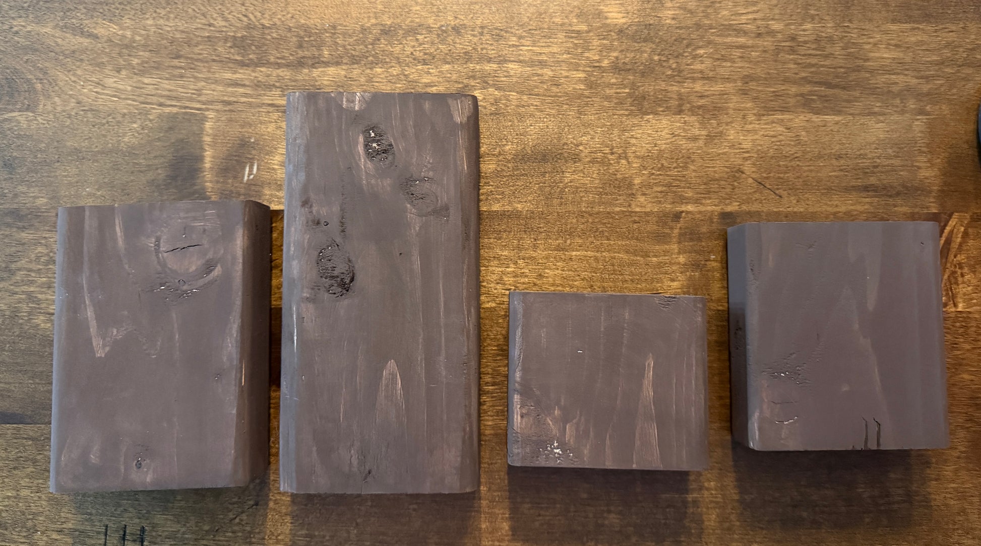 - Set includes 4 blocks made from 2x 4 pine, measuring from 3 inches to 7 inches)